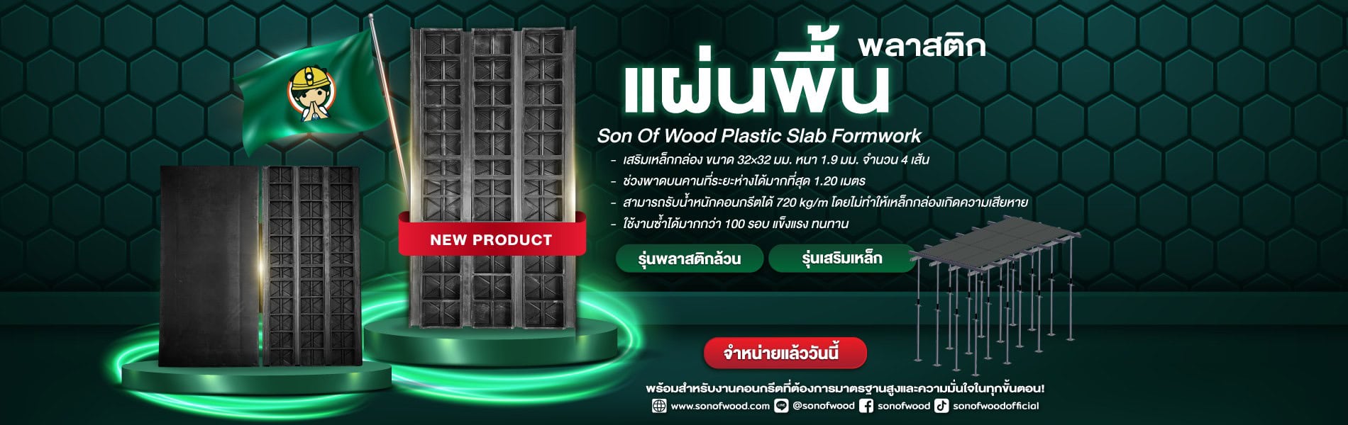 SON OF WOOD คือ โรงงานผลิตไม้แบบพลาสติกก่อสร้างชั้นนำของเมืองไทย เป็นทั้งผู้ผลิต และผู้ขายไม้แบบพลาสติก จำหน่ายผ่านทางออนไลน์ และมีไม้แบบก่อสร้างให้เลือกอย่างครบวงจร ตอบโจทย์งานหล่อคอนกรีตทุกประเภท ไม่ว่าจะเป็นไม้แบบสำเร็จรูปแบบพลาสติก หรือไม้แบบพลาสติกเสริมเหล็ก ก็มีครบ พร้อมรับประกันคุณภาพ ไม้แบบหล่อคอนกรีตพลาสติกทุกชิ้นผลิตจากวัสดุเกรด A มีน้ำหนักเบา แข็งแรง ทนทาน สามารถใช้งานได้ยาวนานมากกว่า 100 ครั้ง!